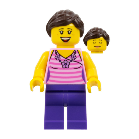 Female, Dark Pink Striped Top, Dark Purple Legs, Dark Brown Hair Ponytail and Swept Sideways Fringe Lego® - twn288